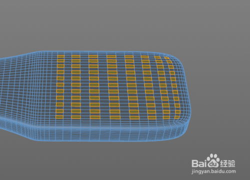 选择面编纂模式,隔一行选择一个需要放置刷毛的面,如下图所示。在菜单栏中依次选择“选择-设置选集”选项,这样我们就为适才选中的面建立了一个选集。在细分曲面临象后面就多出来一个面的选集。