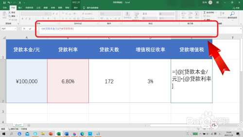 第二步,然后点击输入公式,用贷条目本金乘以利率。