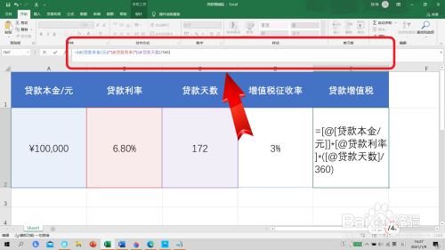 第三步,接着输入“*”号,用贷条目天数除以360天。