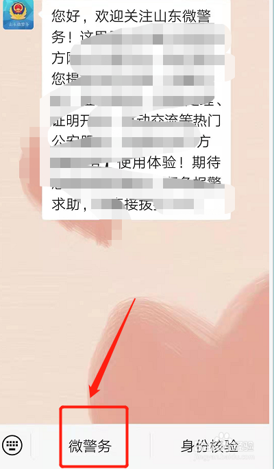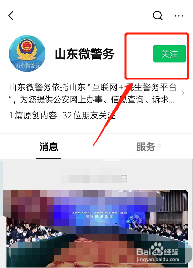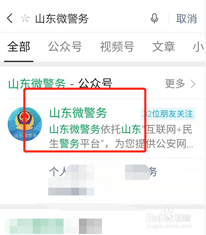 打开微信,添加伴侣,输入:山东微警务,点击公家号。
