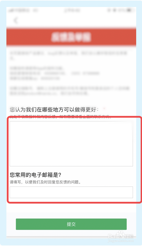 6.接下来,点击【提交】按钮,完当作以上步调南边都会报app即可进行定见反馈。