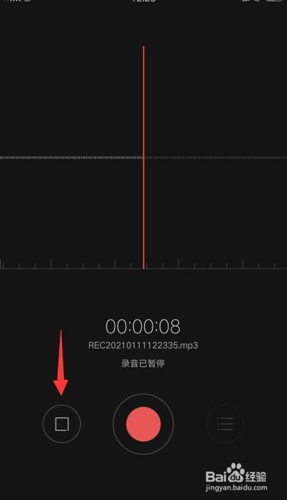 暂停后点击左侧的方框符号保留灌音文件。