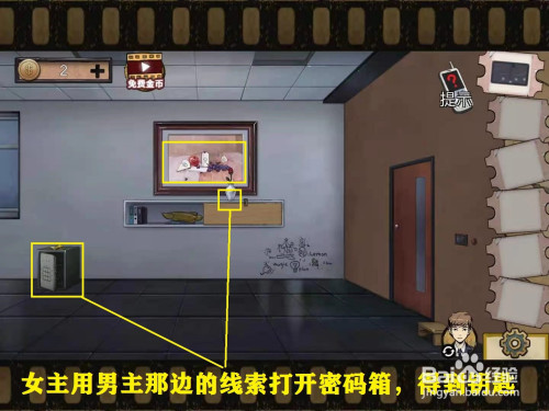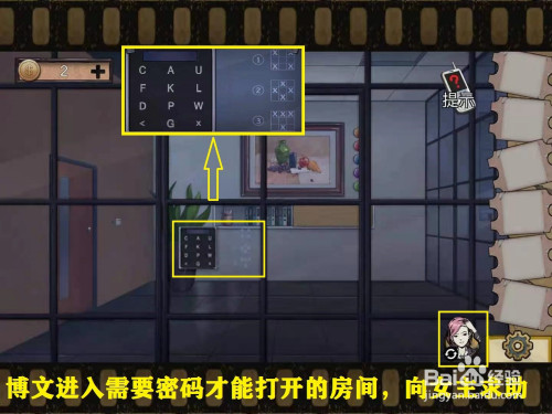 男女本家儿角被分隔,男本家儿这边碰到了一个玻璃门,上面有一个线索,可是需要密码打开,乞助女本家儿。