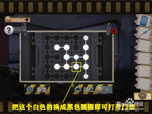 用工作证仍是不克不及打开,说是有故障,查抄下方配电盒,用钥匙打开,一个小游戏,如图安插黑色和白色圆圈即可。