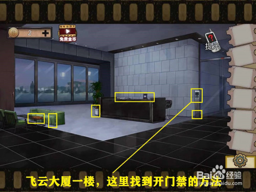 进入飞云大厦大厅,在这里找到工作证,才能开启门禁进入电梯间。
