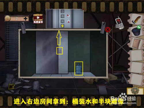 右边房间是一个密码柜子,密码是垃圾桶那边的线索:3689,地上的桶装水捡起来。