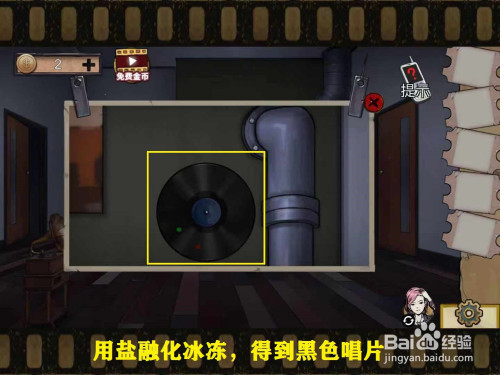 用水瓢传送给男本家儿,去水龙头接水,再传送给女本家儿,用来泡企鹅前面的地缝,获得:钥匙。女本家儿把输送带上面的柜子用钥匙打开,获得盐,传送给男本家儿,洒在冰上,获得:黑色唱片。