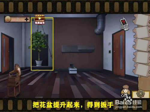 在盆栽这里拿到钥匙,欢迎台上有个画着时钟的立牌,这里有舞者的线索;有一支圆珠笔,把笔芯掏出来,打开茶几上的黄色箱子,获得工作证和电阻。
