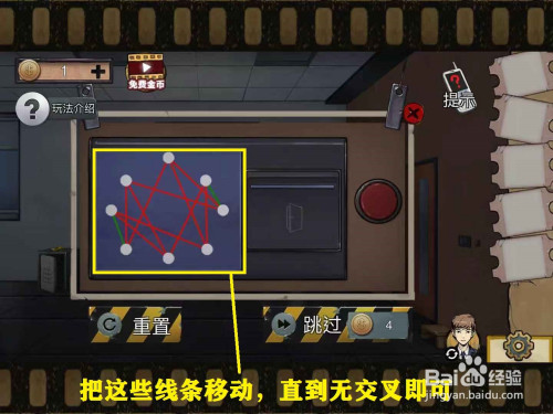 红色海洋球和剃刀组合,获得另一半钥匙,把两个半钥匙组合获得完整钥匙,归去第一间房开左边墙壁上的锁,女本家儿何处的门上的图案变亮,把这些线条移动到无交叉即可开门。
