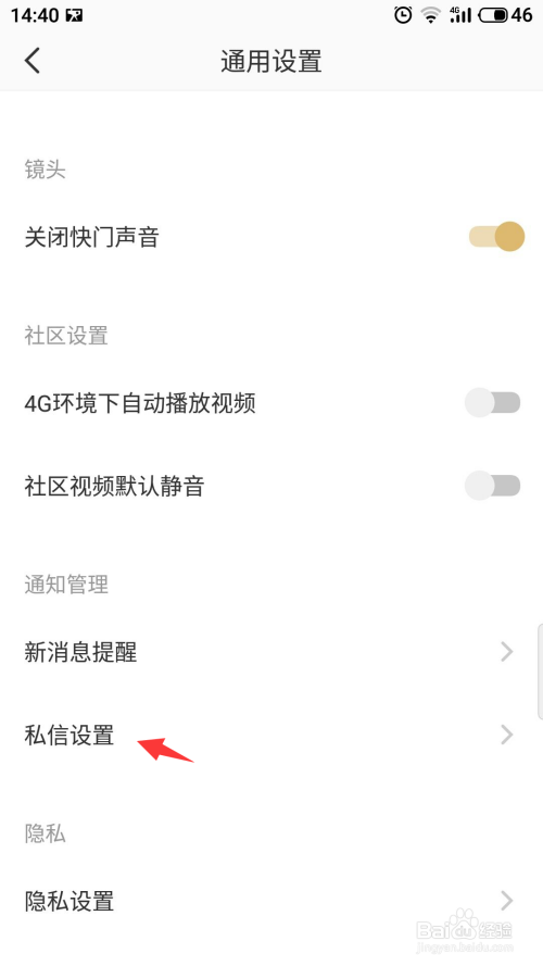 进入页面选择私信设置