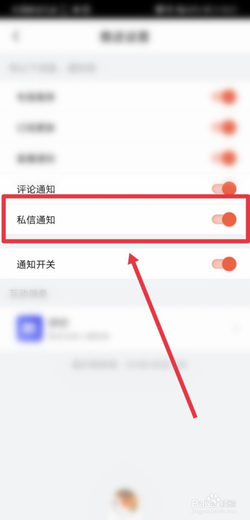进入到推送设置页面后,找到私信通知功能;