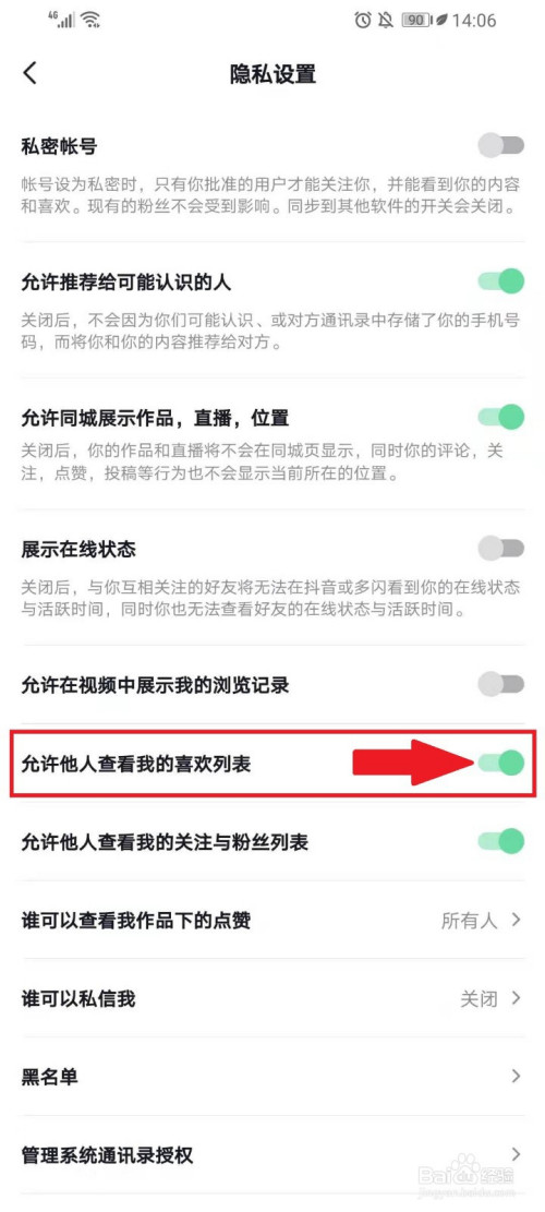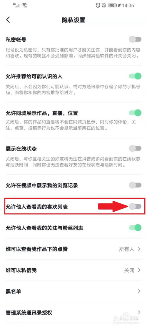 封闭“许可他人查看我的喜好列表”右侧的开关。