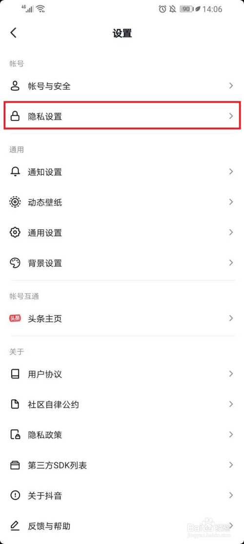 点击【隐私设置】。
