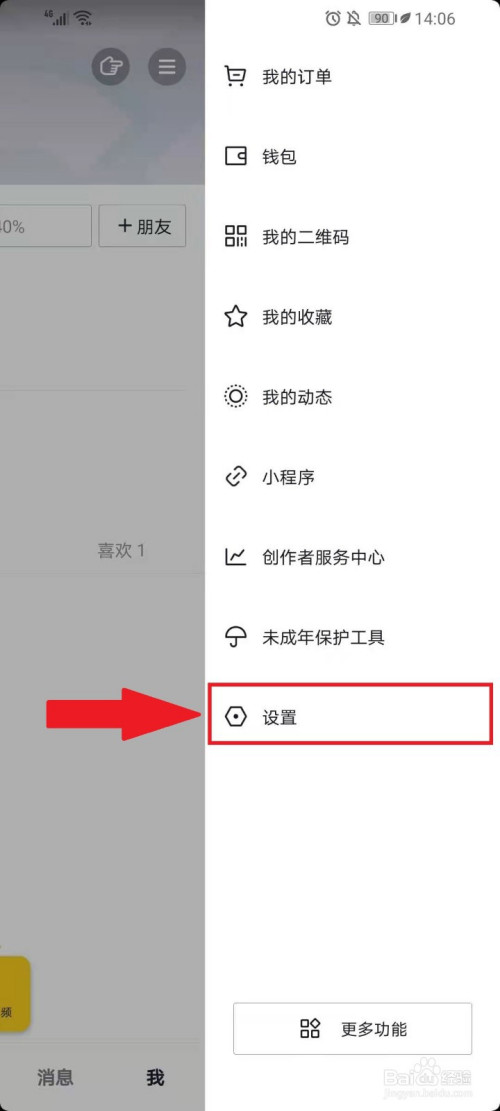 在弹出的侧边栏中点击【设置】。