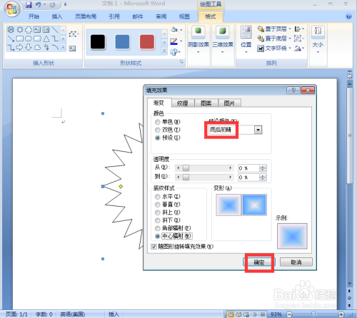 点击渐变填充,在预设颜色中点击雨后初晴,按确定;