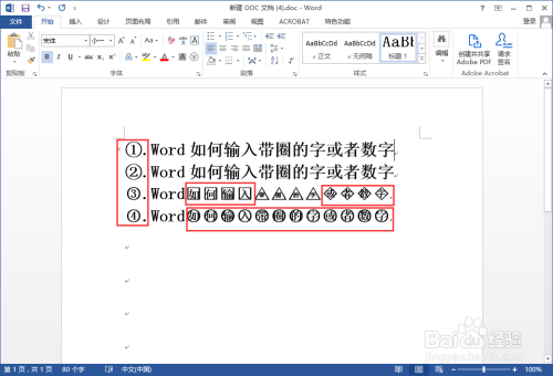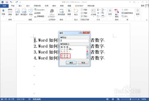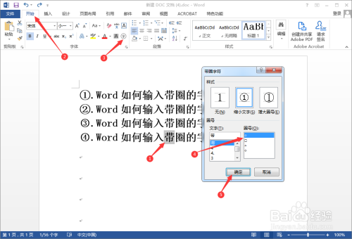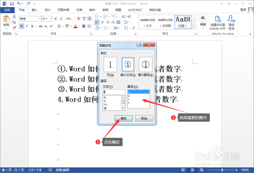 点击“符号”,下拉菜单,选择带圈的编号,点击确定。