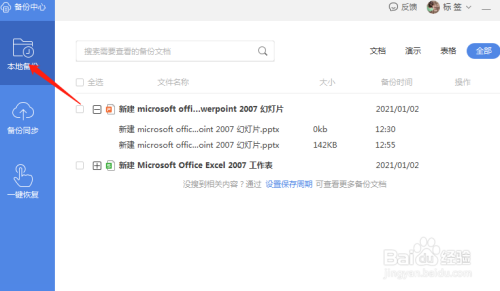 这样当我们需要找回文件时,点击当地备份即可查看。