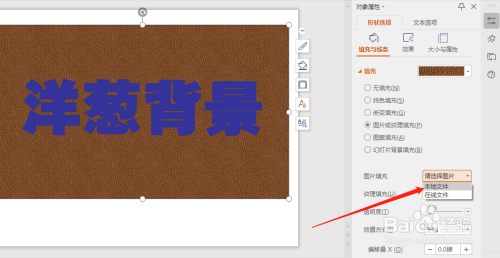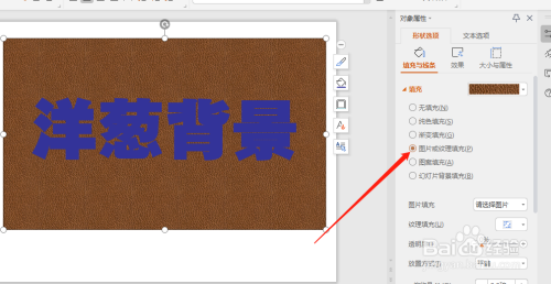 把字体的布景设置为洋葱,点击图片或纹理填充。