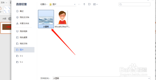 把字体的布景设置为水墨画,点击图片或纹理填充。