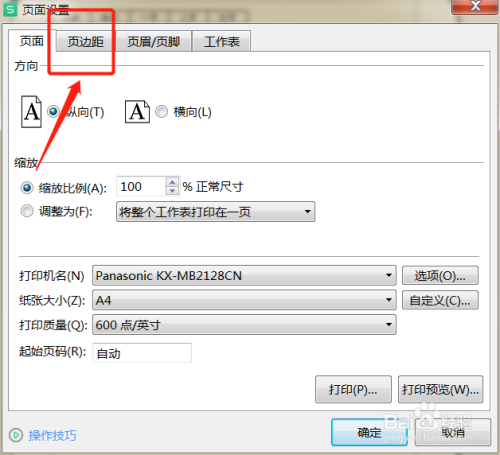 在页面设置页面,点击切换到页边距。