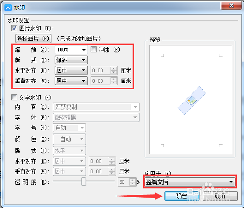 然后按照本身的现实需求进行图片水印相关参数设置。设置好后,点击窗口右下角的【确定】