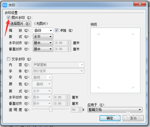 这时会弹出以下窗口,我们在【图片水印】左侧点击打钩