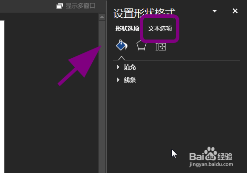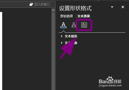 右侧弹出设置文本框格局菜单,点击【文本选项】;