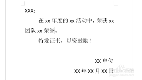 首先,书写好证书需要的文字,具体如图所示: