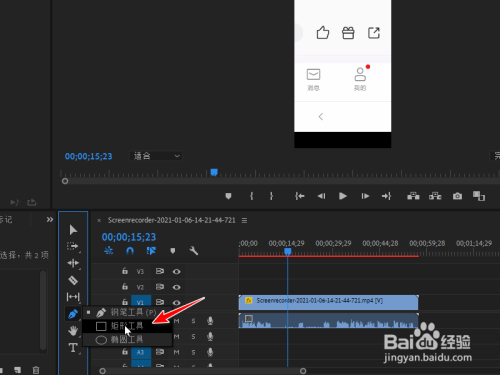 长按钢笔东西,选择矩形东西。