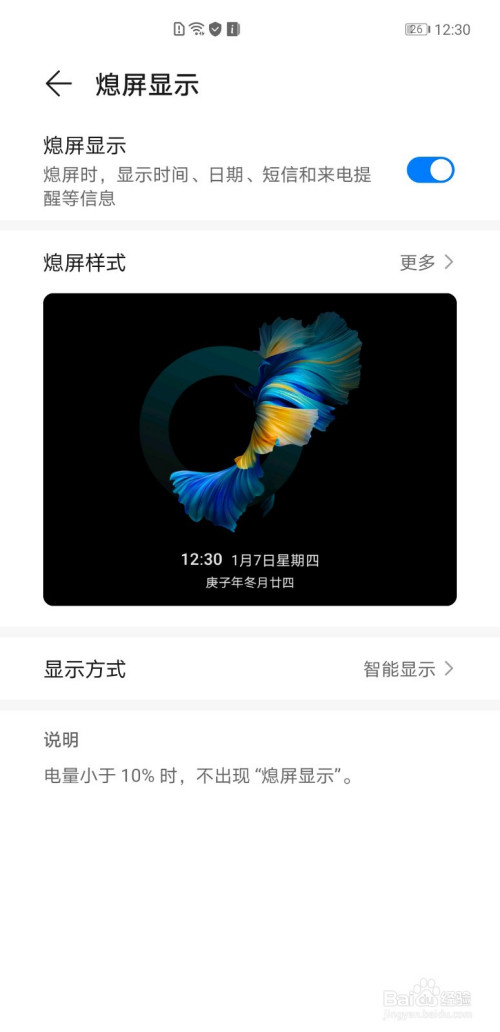 点击之后,就会来到这个处所,上面有一个本家儿题,下面就是熄屏显示,点击这个内容。