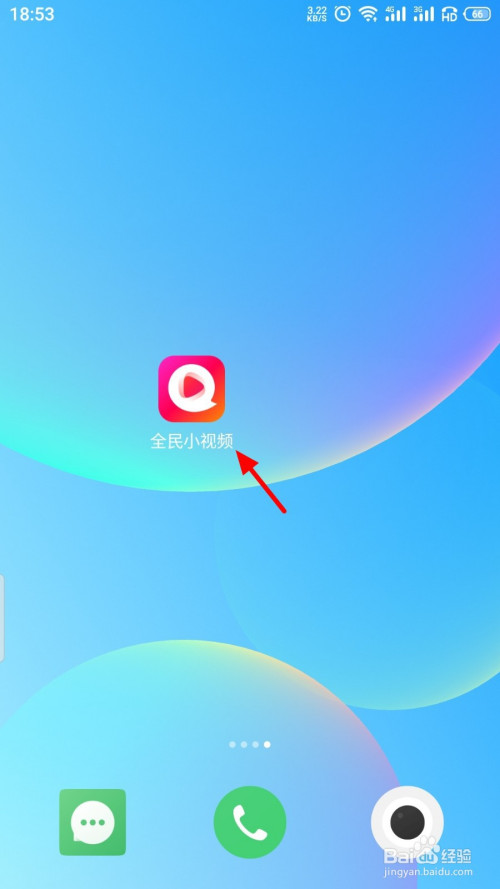 在手机桌面找到全民小视频 APP,打开 全民小视频;