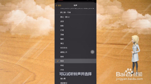 然后在页面里可以看到有很多铃声,可以试听铃声并选择。