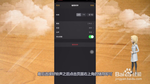 3、跳转到闹钟编纂界面之后点击页面里的铃声。