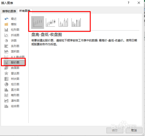 单击股价图,右侧单击股价图的样式,之后单击【确定】。