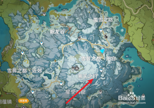 2、来到龙脊雪山,我们打开地图,来到冷天之钉这个位置