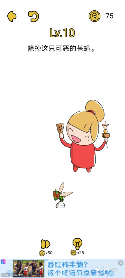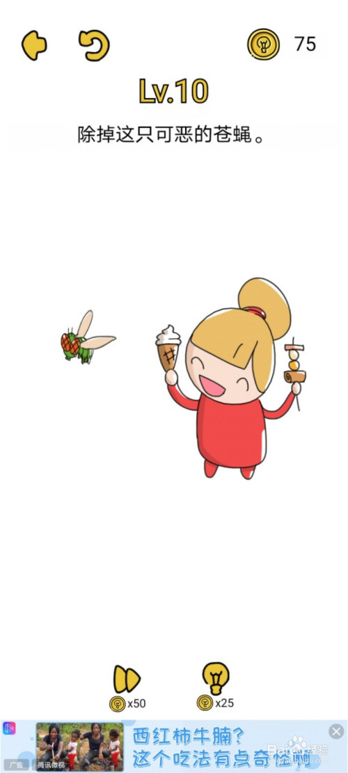 在冰淇淋失落到地上之后,点击苍蝇,点击冰淇淋上的苍蝇过关