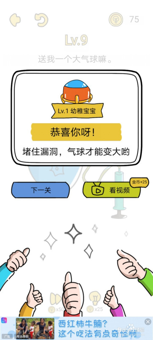 用一个手指堵住屏幕上气球的缝隙,然后用另一只手,上下鞭策气球的打气筒,负气球布满气