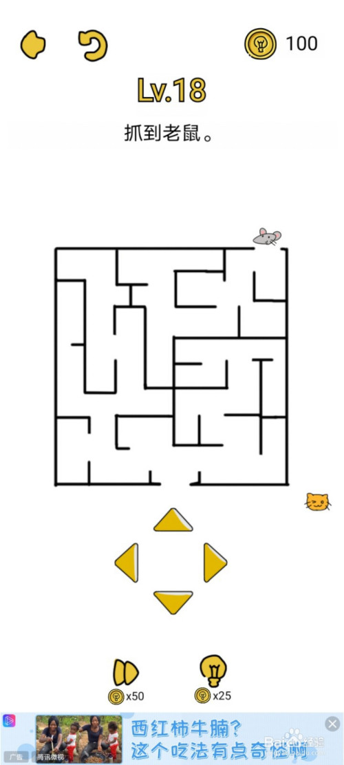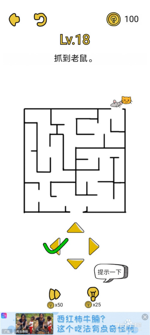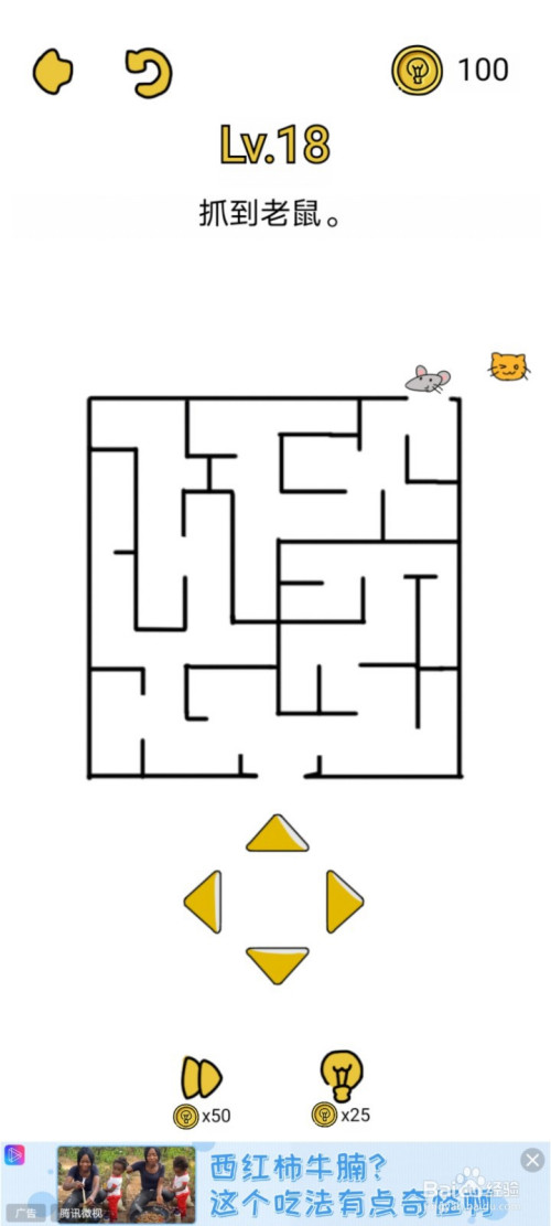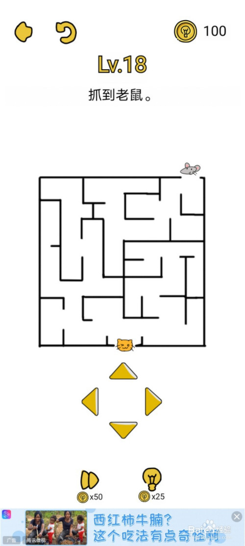 不要进出神宫,依次点击标的目的下、右、上、左走,让小猫从迷宫外面将老鼠抓住