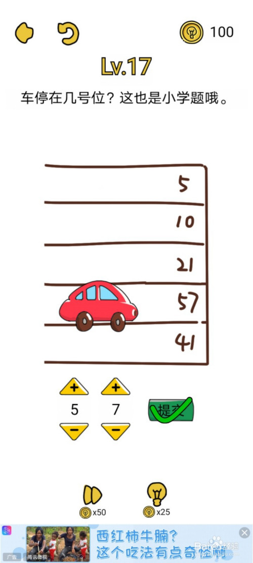 将挡在泊车号上的小车标的目的左移动就可以露出泊车位号,是57