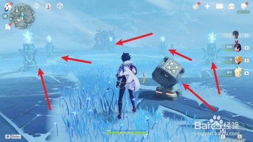 2、到了今后我们去启动解锁碎片的机关,然后按照火精灵移动的位置,来解锁冰柱