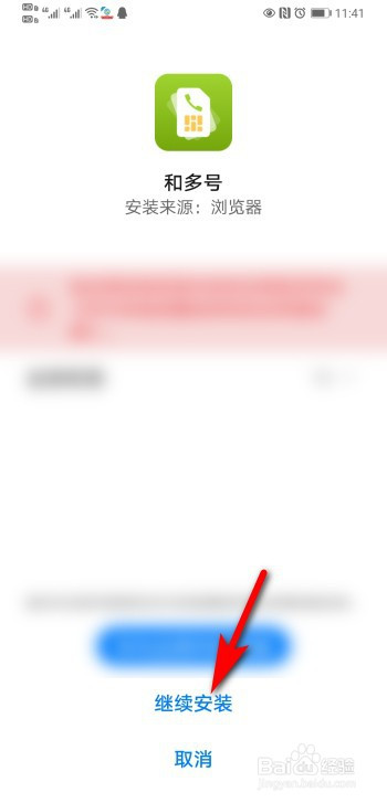 页面弹出和多号,点击继续安装。