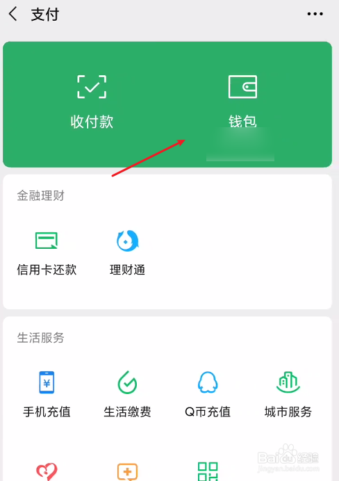 在手机里打开微信,然后进入用户页面,并打开支付选项。