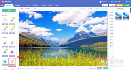 在美图秀秀上打开要点窜的图片,在美化图片里找到【局部彩色笔】。