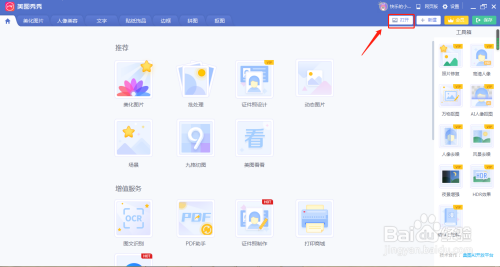 首先在电脑上打开美图秀秀,找到【打开】。