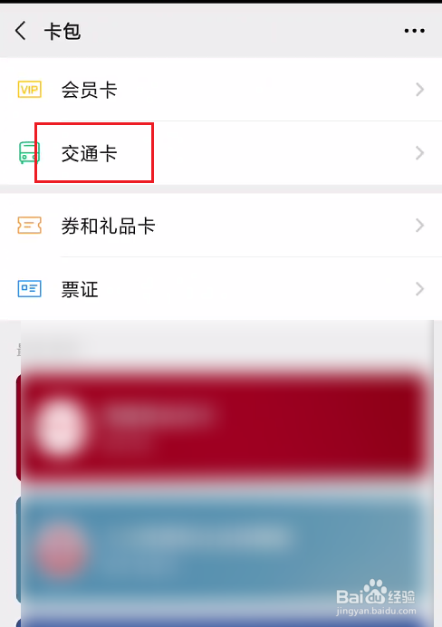 在卡包页面中,我们找到交通卡选项。