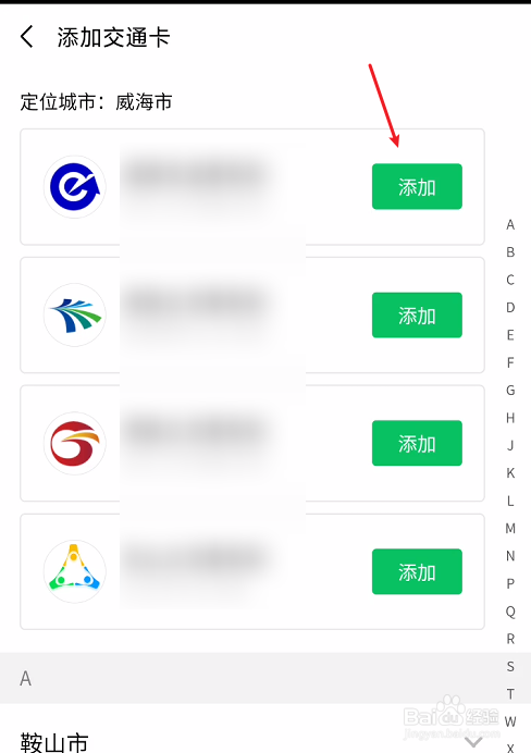 打开交通卡页面,我们再点击添加按钮。