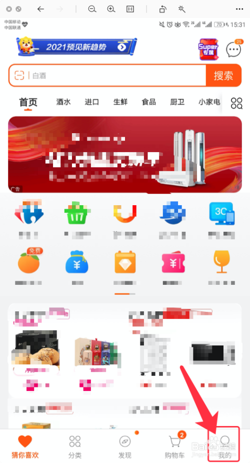 在应用首页,点击【我的】,如图所示。