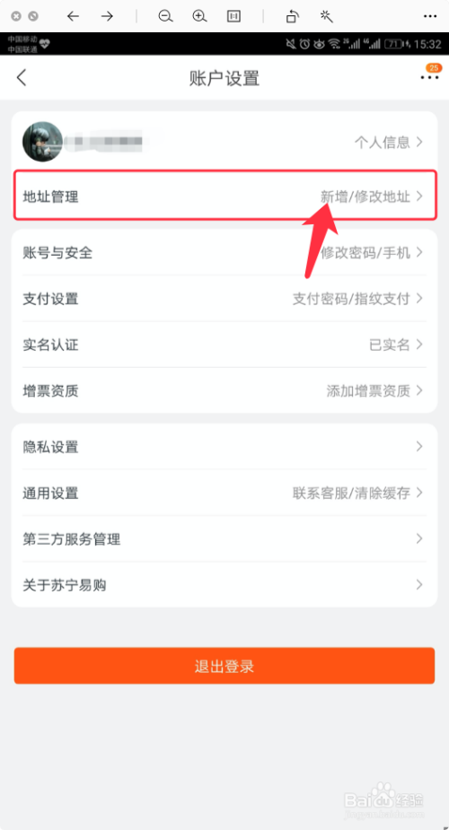 在【账户设置】中,点击【地址办理】,如图所示。
