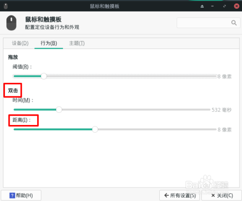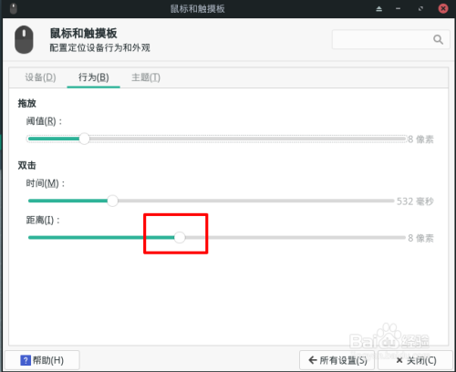 拖动鼠标滑块设置双击距离即可。