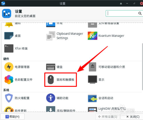 在whisker菜单中单击打开【设置】。